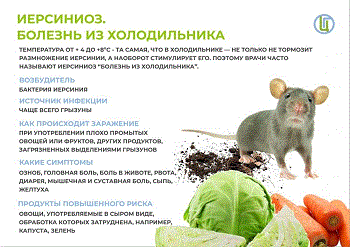 Иерсиниоз (кишечный иерсиниоз) — острое инфекционное заболевание, возбудителем которого является бактерия Yersinia enterocolitica. Инкубационный период составляет 1–6 дней (преимущественно 2–3 дня). Механизм передачи — фекально‑оральный, ведущий путь передачи — пищевой.