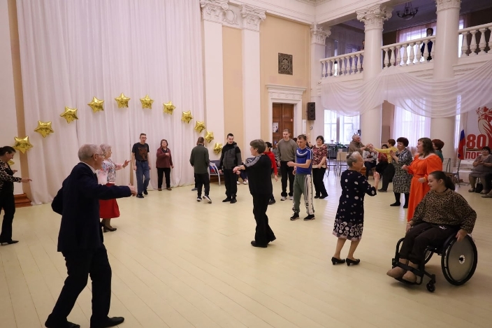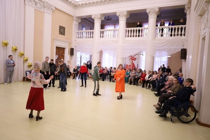 В просторном фойе звучала живая музыка в исполнении муниципального духового оркестра имени М. Борисова. Музыканты не только исполнили всем присутствующим красивые и известные мелодии, но и подарили им положительные эмоции. На лицах гостей сияли улыбки, многие с удовольствием танцевали под музыку и общались друг с другом.