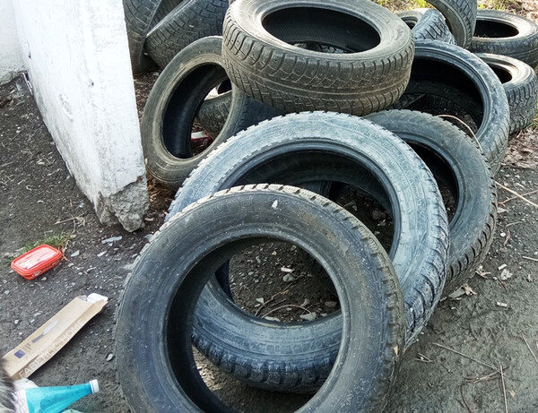 Горожане "переобулись" и старую резину выбросили на контейнерные площадки.