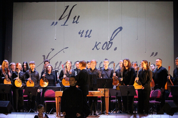 В этом музыкальном океане голосом Гоголя зазвучали студенты театрального отделения колледжа: Аксиния Постник, Арина Есипенко, Сергей Сергеев, Елена Самохвалова, Мария Гордеева и Анастасия Коваленко, рассказав биографию главного героя бессмертного произведения "Мертвые души". Слова Гоголя, произнесенные с трепетом и пониманием, обретали новую жизнь, рисуя перед слушателями яркие эпизоды жизни известного персонажа - отставного чиновника Павла Ивановича Чичикова.