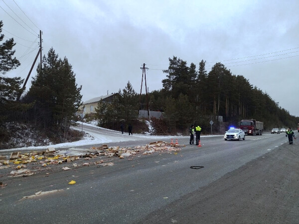 По предварительным данным, водитель автомашины «Газель» при выезде с второстепенной дороги не предоставил преимущество и допустил столкновение с автомашиной «Shacman» (самосвал), который двигался по главной дороге. В результате столкновения оба автомобиля съехали в кювет и опрокинулись. Из кузова опрокинувшейся Газели и самосвала рассыпался груз, в том числе частично на проезжую часть.