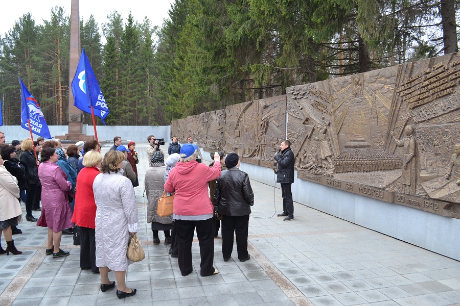 Учитывая предложение руководителя асбестовской группы бывших блокадников Ленинграда Людмилы Константиновны Крупской, первым пунктом экскурсионной поездки обозначили посещение Широкореченского военного мемориального комплекса. Узнав о приезде группы ветеранов из Асбеста, автор барельефов Широкореченского мемориала, генеральный директор творческо - производственного объединения Екатеринбургский художественный фонд Сергей Титлинов сразу же согласился провести экскурсию с небольшой лекцией.
