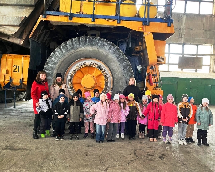 Дошколята отправились на комбинат, рассмотрели огромный БелАЗ