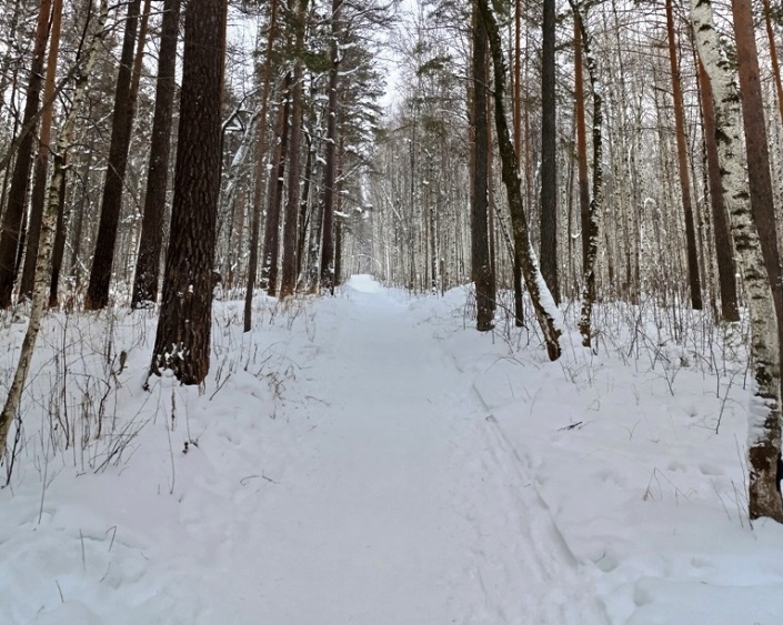 Легкий морозец, утренняя свежесть и отличное настроение - все это сопровождает всех, кто пришел в лес на тропу здоровья.