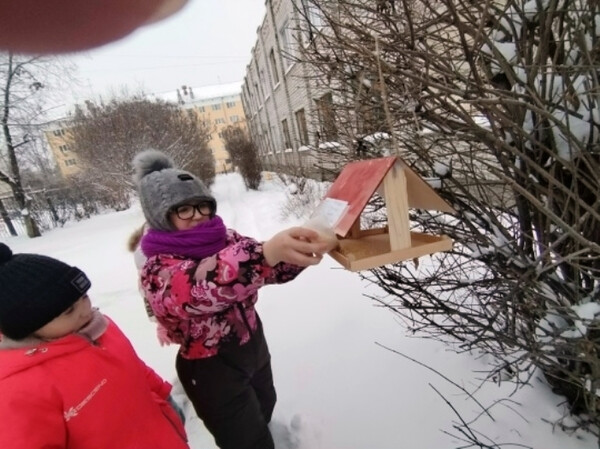 Ребята регулярно пополняют кормушки кормом, не забывая про принцип умеренности.