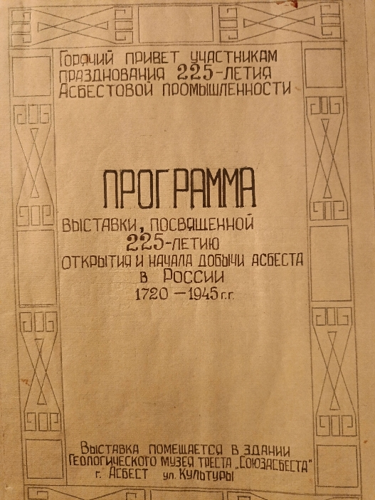 В 1945 году в нашем городе, в геологическом музее треста «Союзасбест», состоялась техническая конференция, приуроченная к 225-летию асбестовой промышленности.