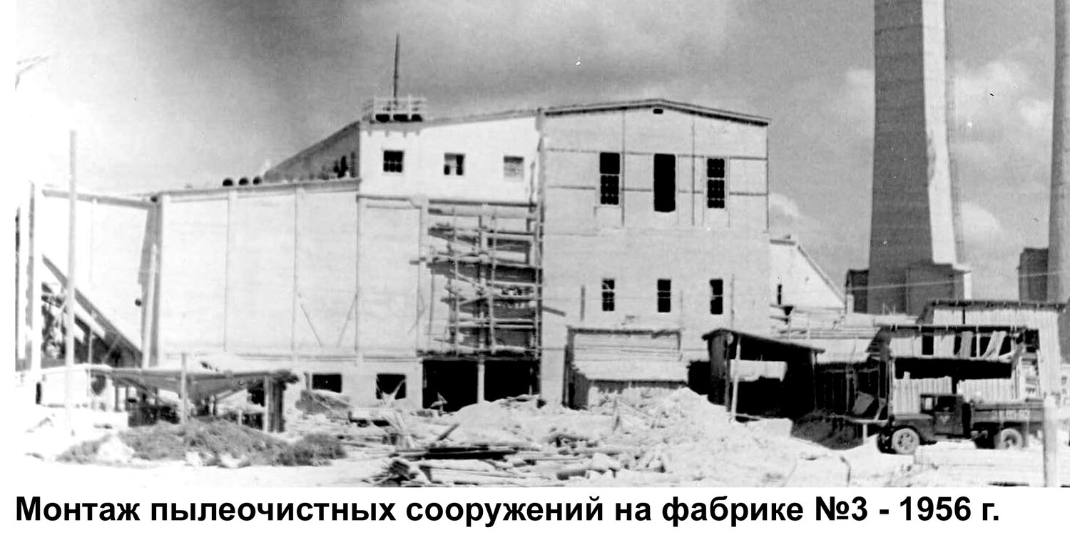 С течением времени вместо пылеосадительной камеры были запроектированы новые пылеосадительные сооружения с электрофильтрами и двумя трубами высотой 120 метров каждая.