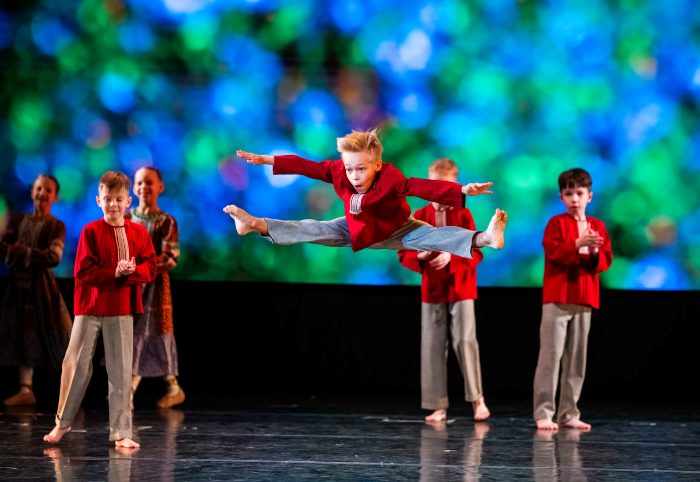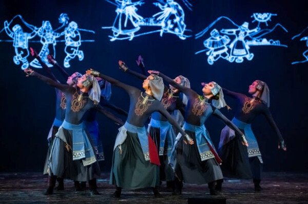 Нельзя рассказать историю нашего края, не упомянув Уральские горы, — именно образ гор встречает зрителей: все участники танцевального спектакля образуют единую мощную природную стихию, а затем, словно камешки, рассыпаются.