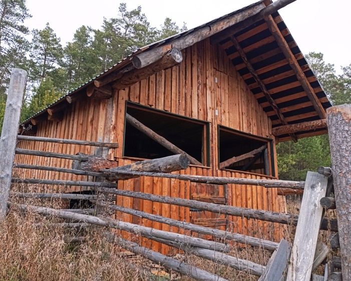 Из всего наследия прошлого ХХ века остался всего один целый дом. Но зато рядом построены навесы и сараи летнего типа, которые можно квалифицировать как строения, предназначенные для животноводческой деятельности. К такому заключению подталкивают и загоны, огороженные почти новой сеткой и в некоторых местах свежими жердями.