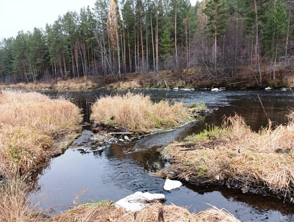 И вот в этом году в конце осени побывали вновь. Местность здесь, конечно, пейзажно удивительная, как говорили в прежние времена, на гиблом месте жилье не строили. Поселок был расположен на пологом склоне берега, который спускался к реке.