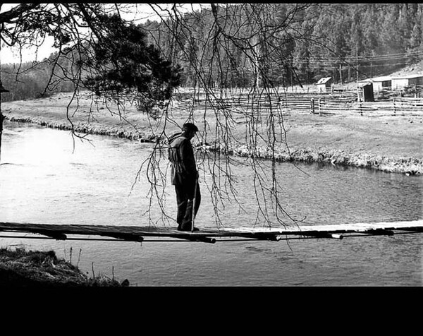 Река Пышма напротив поселка не так широка, и в прежние времена здесь был подвесной мост. А рядом с мостом брод, через который можно было попасть в поселок. Этим бродом, видимо, пользуются и сейчас.