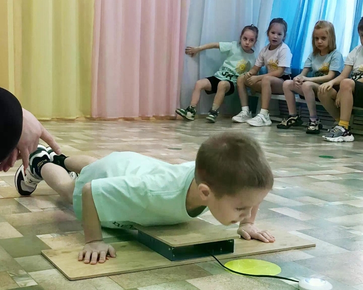 Юные спортсмены попробовали свои силы в выполнении нормативов ГТО: выполняли отжимания с электронным подсчётом, прыжки в длину с места и упражнения на гибкость.