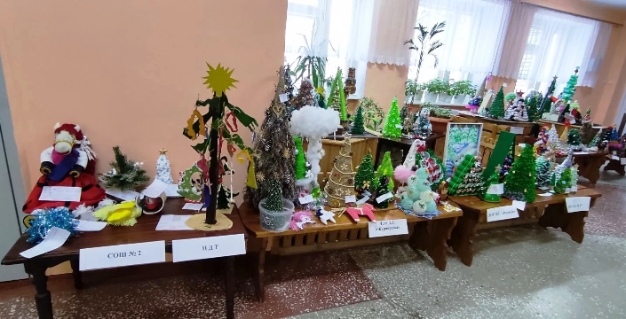 На станции юных натуралистов завершился конкурс декоративно-прикладного творчества "Сохраним живую ель-2025". В фойе здания СЮН царит сказочная атмосфера.