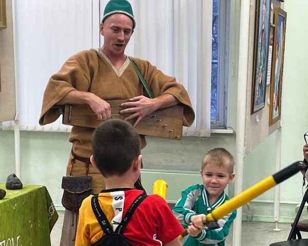 В Асбестовском историческом музее артист из Перми представил для дошкольников и младших школьников уникальный спектакль-выставку "Алёша Попович и Тугарин" — сказку-былину в формате исторической реконструкции эпохи начала XIII века (Владимиро-Суздальское княжество).