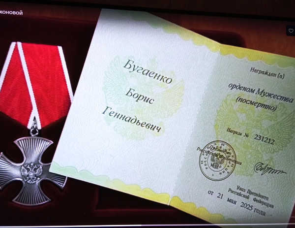 В администрации города вручили Орден Мужества семье нашего земляка — Бугаенко Бориса Геннадьевича, погибшего при выполнении боевой задачи в зоне специальной военной операции.