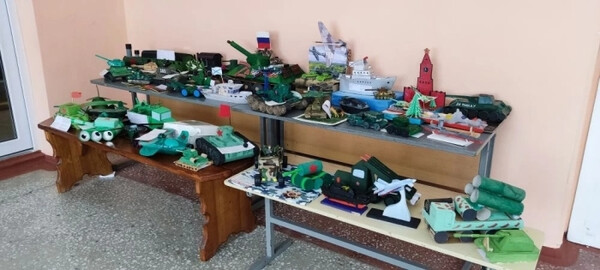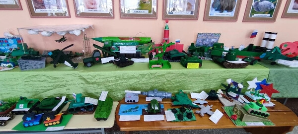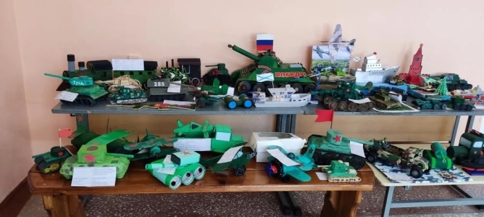 Конечно, это модели - поделки ребят. Здесь объявлен конкурс декоративно-прикладного творчества «Слава Армии нашей!».