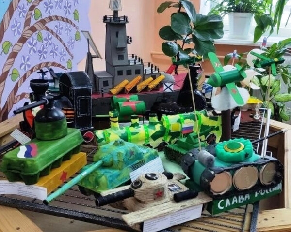 "Парад военной техники" украшает пространство, делает его ярким и интересным. Все поделки, несомненно, изготовлены с душой и поражают своей оригинальностью. Родители вместе с детьми проявили творчество, фантазию и мастерство.