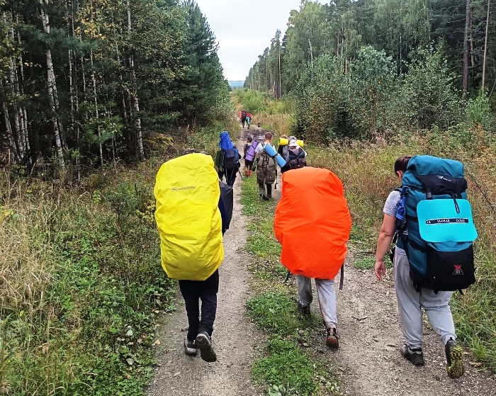 Всего в поход с руководителем Пятыгиной Эльвирой Николаевной отправились 17 детей от 6,5 до 16 лет и несколько увлечённых туризмом родителей. Перед ребятами стояла главная цель – преодоление пешего маршрута. Переходы, которые им пришлось совершать, не всегда были простыми: от 5 до 18 километров. Старшие ребята заботились о малышах, помогали нести тяжелые рюкзаки, учили правилам устройства бивака.