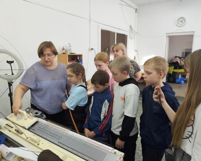 Воспитанники детского объединения «Калейдоскоп» с руководителем Мариной Викторовной Рублевой совершили увлекательную экскурсию в мир текстильного производства. Ребята посетили мастерскую машинного вязания.