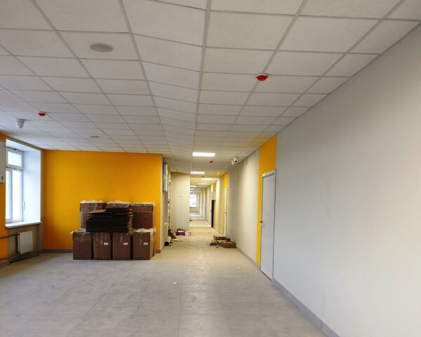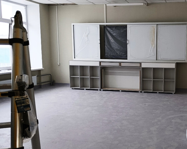 Ремонт школы активно приближается к завершению. В ряде кабинетов уже приступили к сборке мебели, практически завершены работы по укладке плитки, а также начат монтаж гардероба.