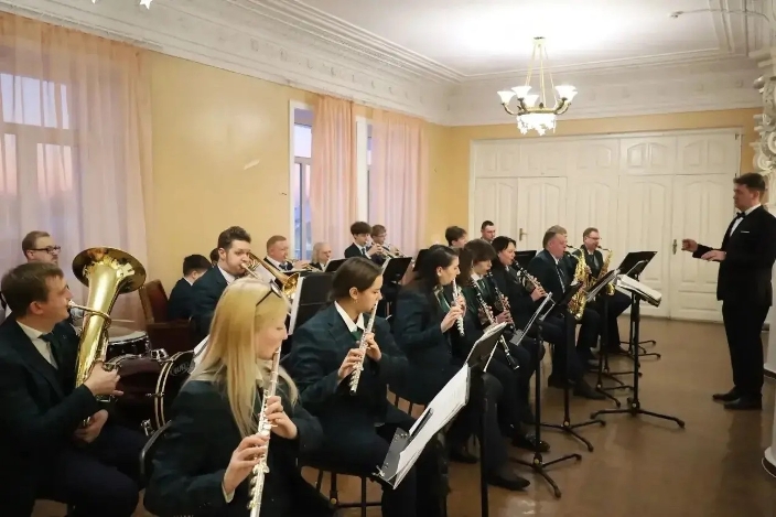 Зал наполнился атмосферой прошлого столетия: дамы блистали в элегантных бальных платьях XIX века, кавалеры появились во фраках и цилиндрах, а живая музыка оркестра наполнила пространство полонезами, вальсами и торжественными маршами.