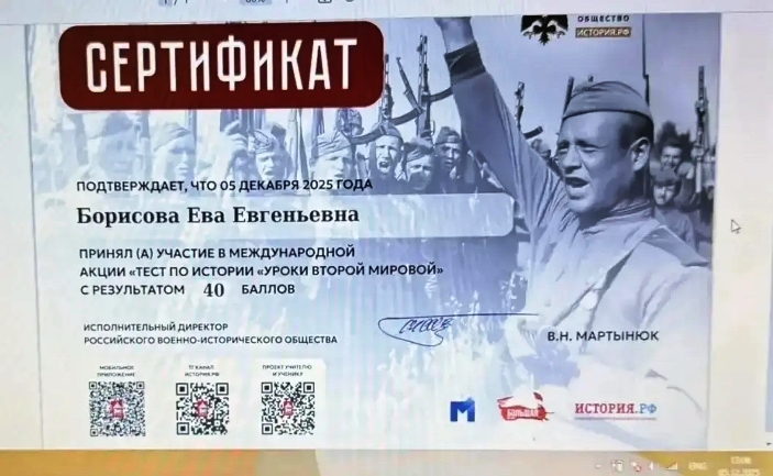 По итогам все участники получили именные сертификаты, ставшие личным подтверждением уважения к памяти поколения победителей.