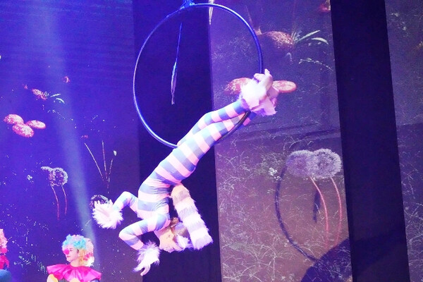 Пластичная Гусеница, парящий Чеширский Кот и акробатическая свита Червонной Королевы — наши артисты оживили любимых героев с помощью акробатики, жонглирования и хулахупов.