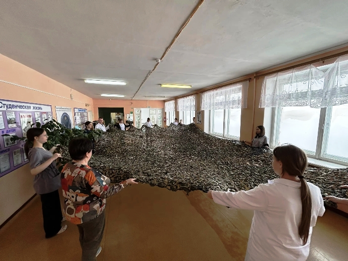 Плетение маскировочных сетей — это не просто рукоделие. Для бойца на передовой качественная сеть — это шанс укрыть технику, блиндаж или позицию от вражеских дронов и авиации. Каждый сплетенный узел, каждый вплетенный лоскут ткани — это чей-то шанс вернуться домой живым. Студенты понимают это и подходят к работе с полной ответственностью.