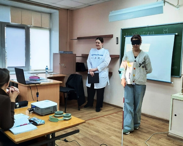 Первокурсники смогли примерить на себя роль незрячего человека, используя специальные повязки, имитирующие потерю зрения. С помощью трости они попытались пройти небольшой маршрут, ощутив на себе все сложности, с которыми сталкиваются люди с нарушениями зрения в повседневной жизни. Этот опыт позволил прочувствовать необходимость развития инклюзивного общества, где каждый человек, независимо от своих физических особенностей, может чувствовать себя комфортно и уверенно.