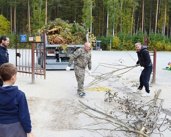 Среди волонтеров как прихожане церкви, так и члены различных общественных организаций. Например, ведущий инженер технического надзора в федеральном градостроительстве, член общественной организации «Отцы России» Александр Филев не только физически трудится, но и дает полезные советы по реализации проекта. Предприниматель Евгений Буторин и самозанятый Дмитрий Кожевников являются прихожанами храма святого равноапостольного князя Владимира. Судьба объекта им не безразлична, поэтому оба подключились к волонтерской деятельности. Интересно, что Евгений - многодетный отец, и участие в уборке территории принимает его десятилетний сын Николай.