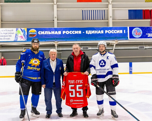 На льду спортшколы «Энергия» энергетики Рефтинской ГРЭС сошлись в товарищеском поединке с коллегами из Белоярской АЭС. Напряжение было электрическим, а победа — закономерной: 2:1 в пользу юбиляров.
