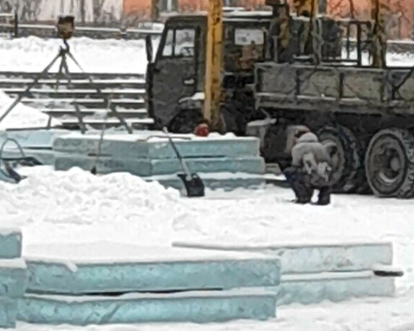 На площадь к ДК «Русь» привезли партию льда для строительства новогоднего ледового городка.
