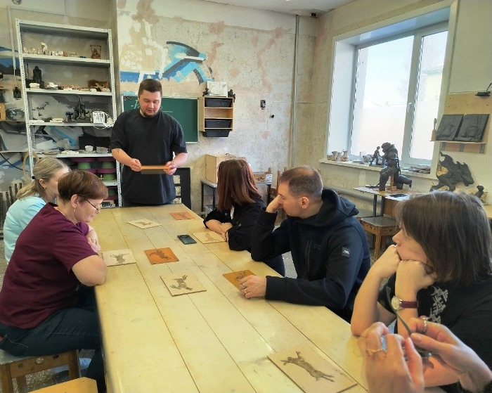 Занятие Алексея Михайловича Оленина перенесло в в мир скульптуры. Педагоги осваивали технику лепки барельефа. Главным героем стал символ весны — заяц. Работа над плоскостной фигурой потребовала особого внимания к нюансам: как передать динамику движения и пространство в твердом материале? В итоге у каждого получился характерный лесной житель с уникальным «темпераментом».