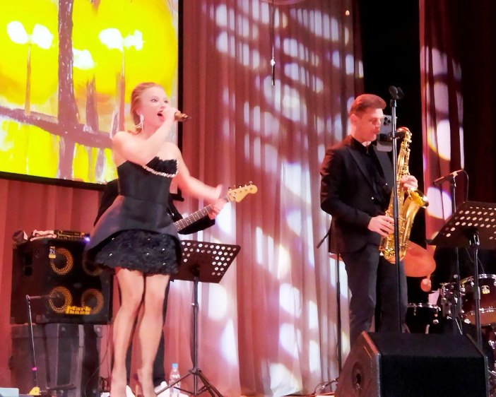 В холодный февральский вечер в минувший четверг в городском концертном зале было жарко от зажигательного исполнения джаза. Разожгли музыкальный огонь на сцене джаз-квинтет Платона Газелериди и певица Ирина Макарова.